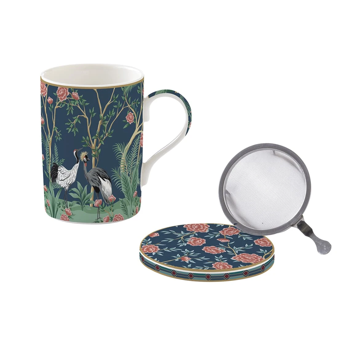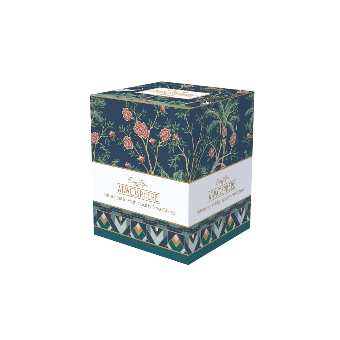 La mug in porcellana della collezione si contraddistingue per l’originalità dei dettagli. Scopri la ricercatezza del design di questa mug, completa di sottobicchiere in porcellana e di infusiera in metallo.