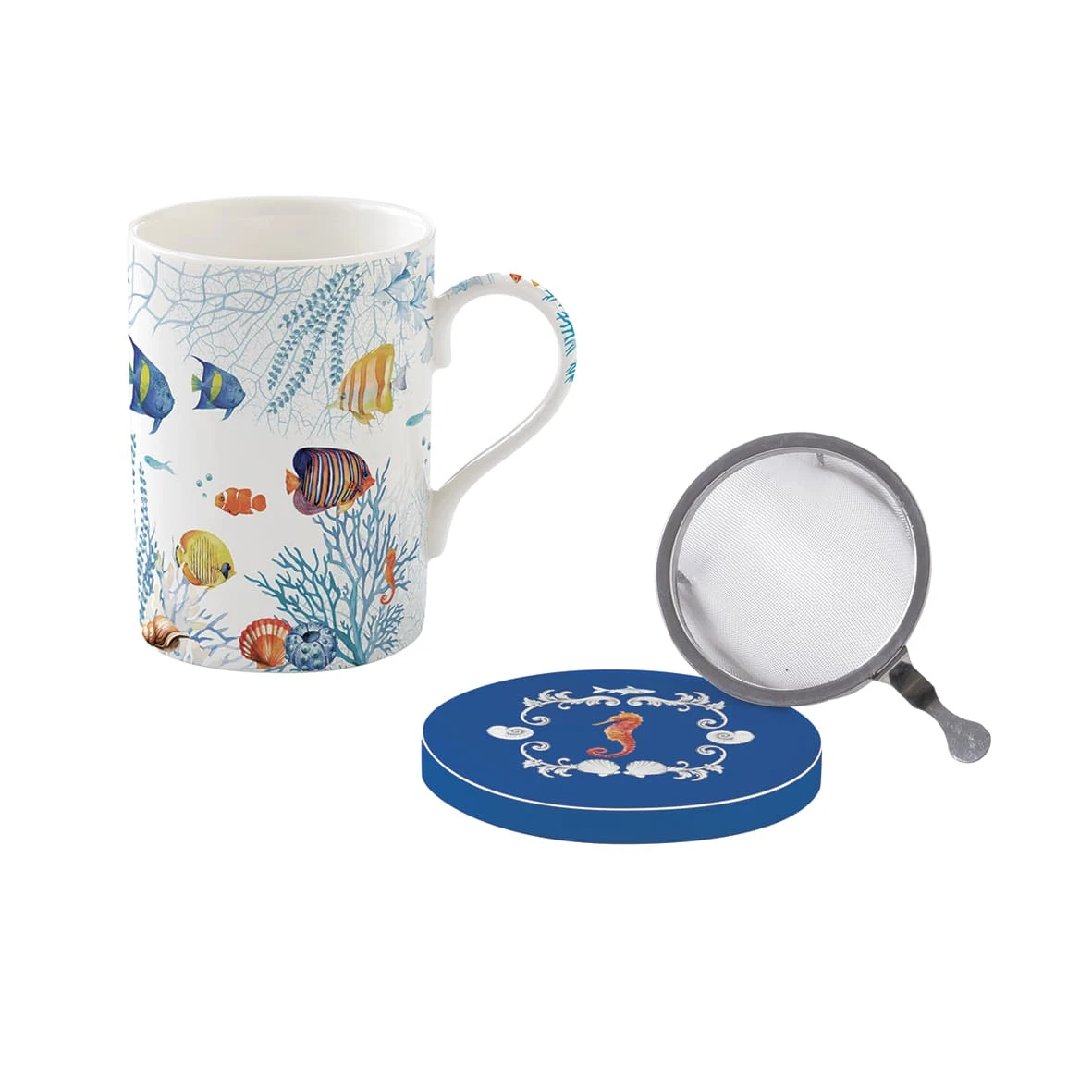 L’infuser set della collezione, in porcellana e coloratissimo, si compone di una mug a tema mare con sottobicchiere in porcellana e di una infusiera in metallo. L’ideale per gustarsi in tutta tranquillità la tua bevanda preferita.