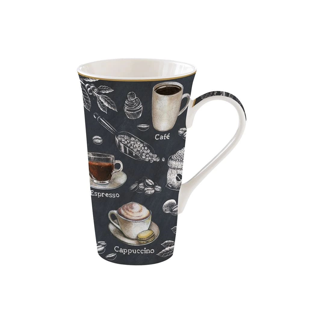 Stupisci i tuoi ospiti con la grafica della mug in porcellana. Perfetta per ogni momento, capiente e con il pratico manico, la mug è caratterizzata da un design italiano. Cappuccino, espresso, chicchi di caffè e cereali riempiono la tazza creando un’atmosfera armoniosa.