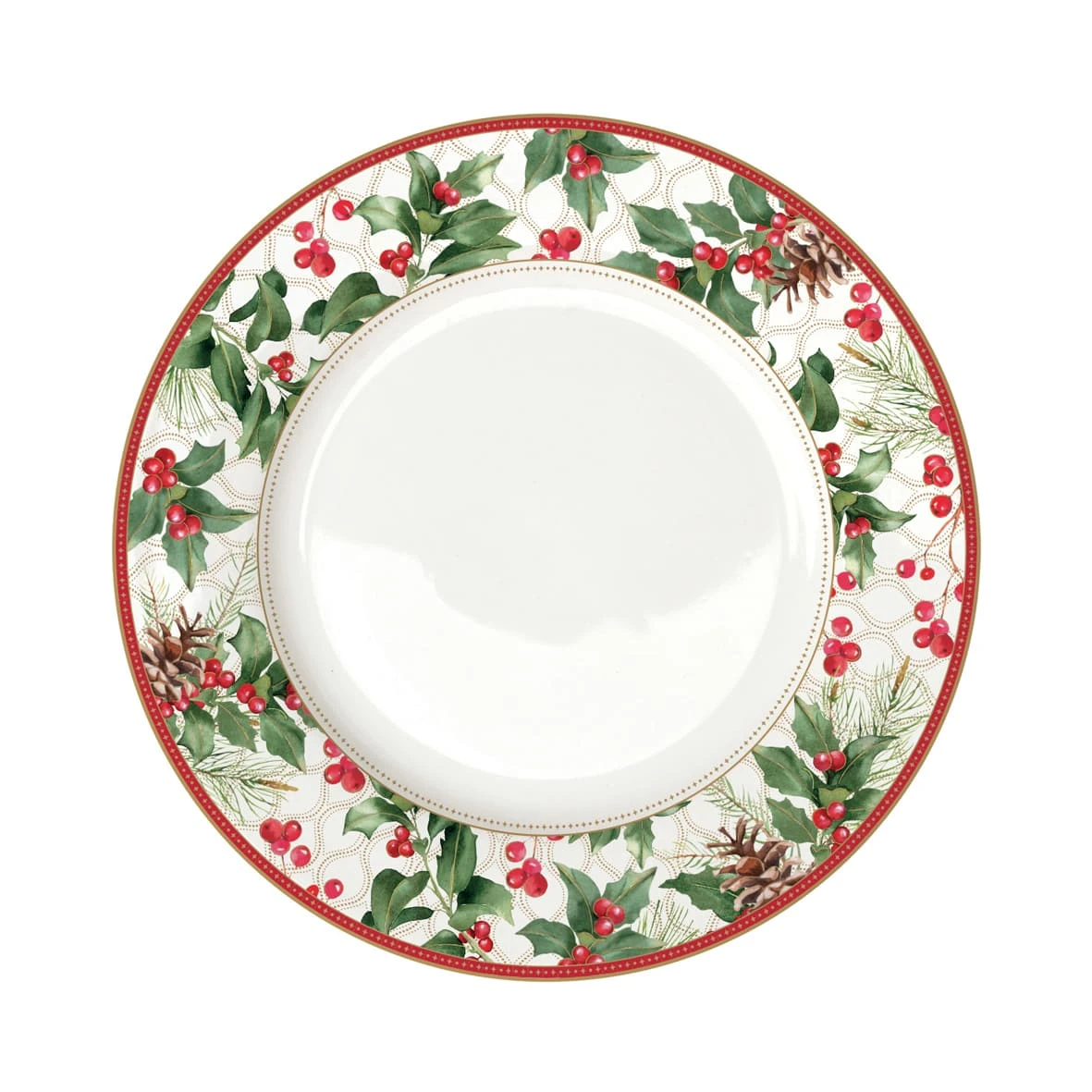 Aggiungi un tocco di eleganza alla tua tavola festiva con questo raffinato piatto piano in porcellana. Il bordo, impreziosito da un delicato motivo natalizio, farà risaltare i tuoi secondi piatti preferiti.