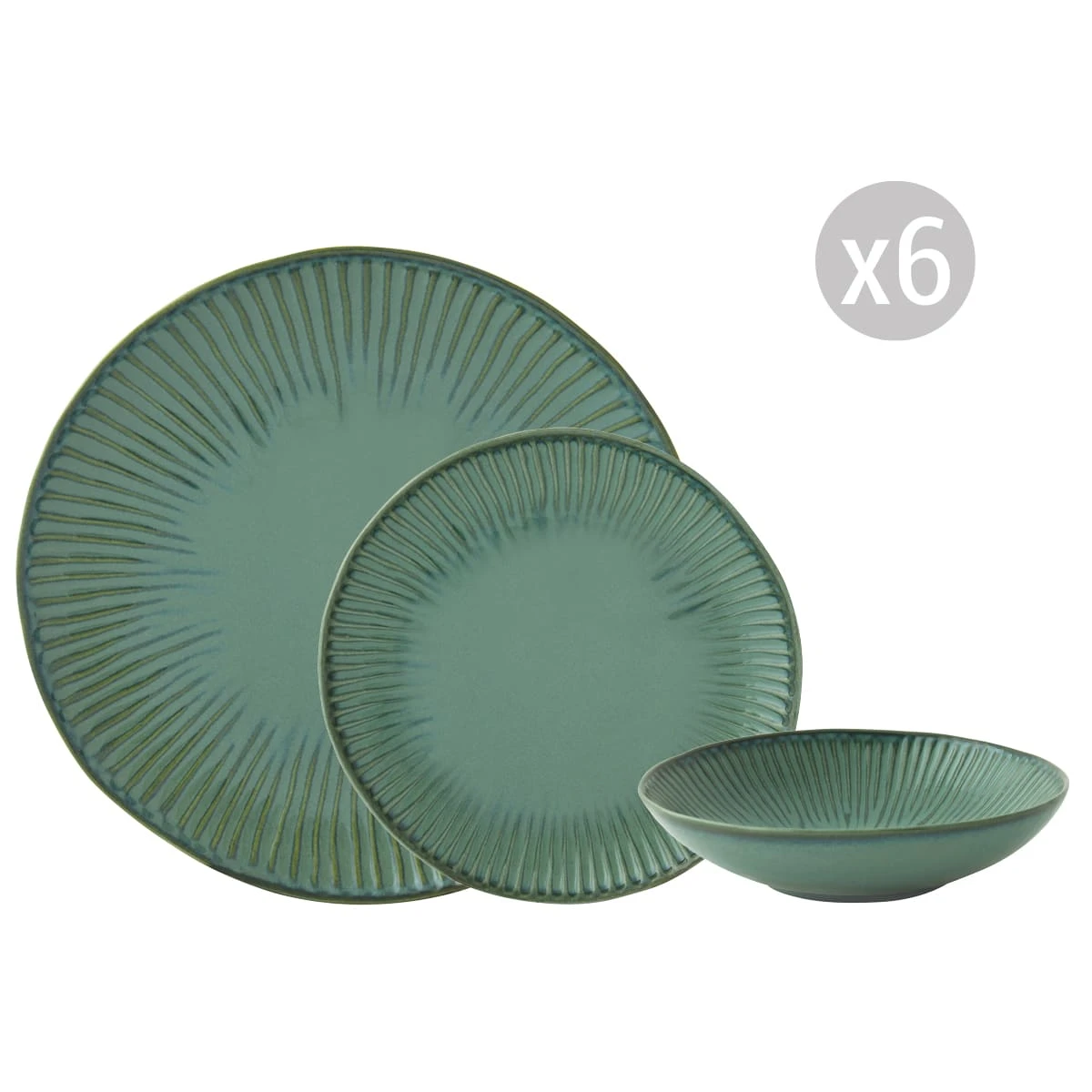 Un tocco di colore sulla tavola che richiama la natura nella sua eleganza più piena. Questo servizio di piatti verdi in porcellana è ideale per una mise en place raffinata.