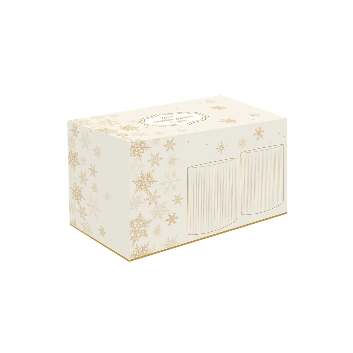 Questo set di duebicchieri in vetro plissé trasparente con filo oro è un complemento perfetto per allestire una tavola natalizia sontuosa e raffinata. I punti luce che derivano dal materiale e dalla lavorazione conferiscono all’apparecchiatura un’atmosfera d’incanto.