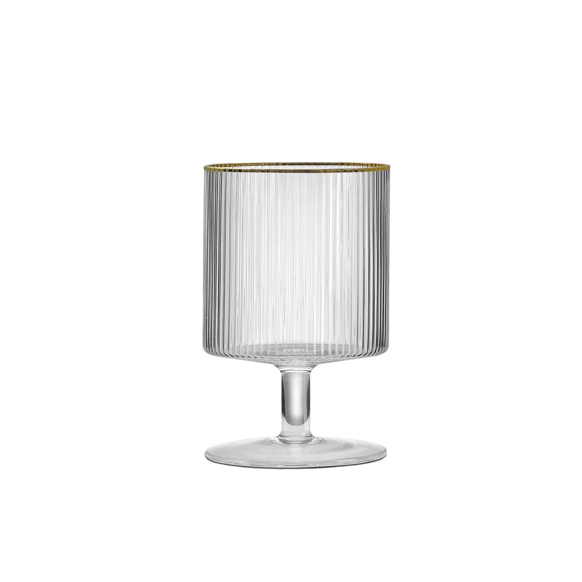 Questo set di due calici in vetro plissé trasparente con filo oro conferisce alla tua mise en place tutto l’incanto che contraddistingue le festività natalizie. Sorprendi i tuoi ospiti con un’apparecchiatura dai dettagli lussuosi.