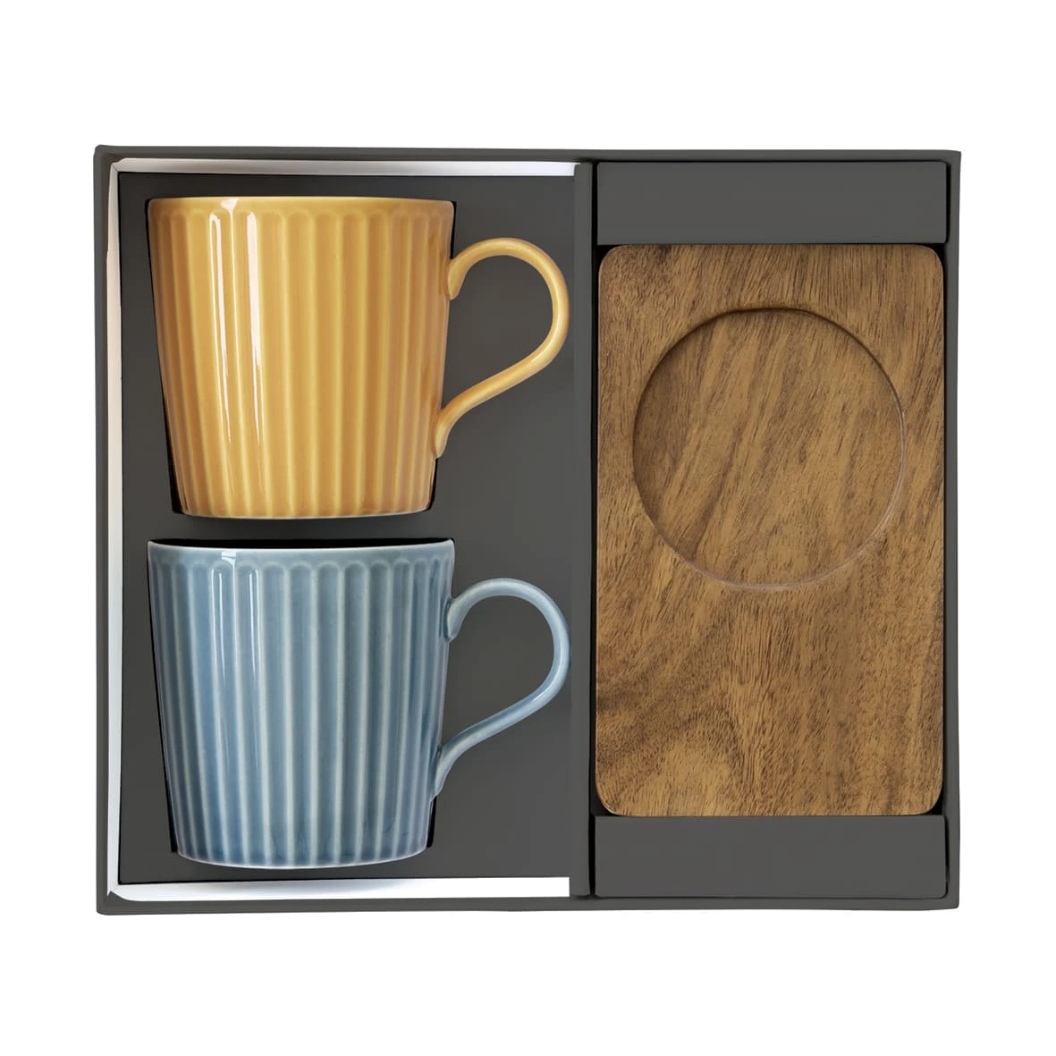 Colora la tua tavola con l’allegria di questo set di 2 tazzine, ognuna corredata della funzionalità del piattino in acacia.