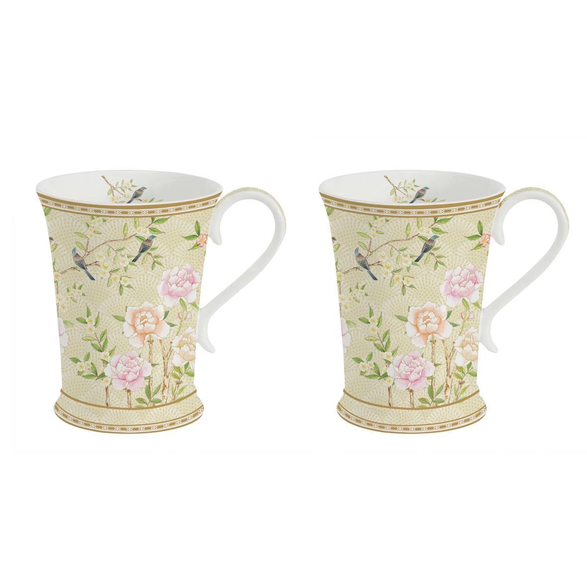 Goditi la pausa relax in compagnia di ospiti sorseggiando una rilassante bevanda in questo set 2 mug in porcellana Bone China. Queste tazze, grazie ai loro motivi floreali, si rivelano eleganti e raffinate. Goditi queste mug in porcellana di alta qualità in un tranquillo pomeriggio di primavera.