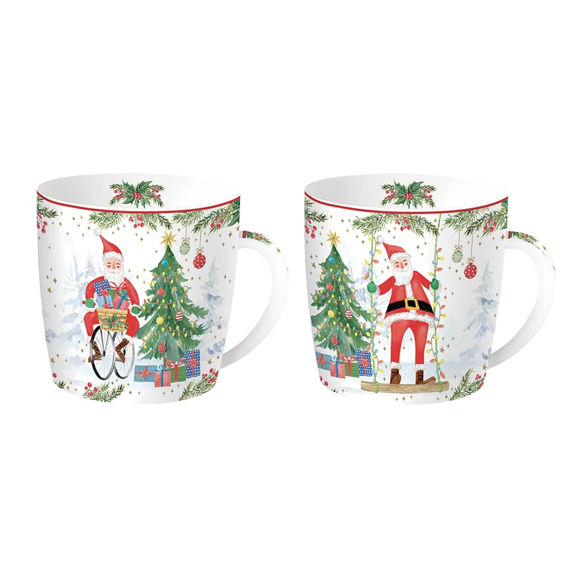 Tutto il Natale è sul set 2 tazze in porcellana della collezione. L’albero, i regali, la neve, Babbo Natale, il pino e gli addobbi caratterizzano la coppia di tazze natalizie. Goditi la tua pausa relax con una rilassante tisana o con una dolce cioccolata.