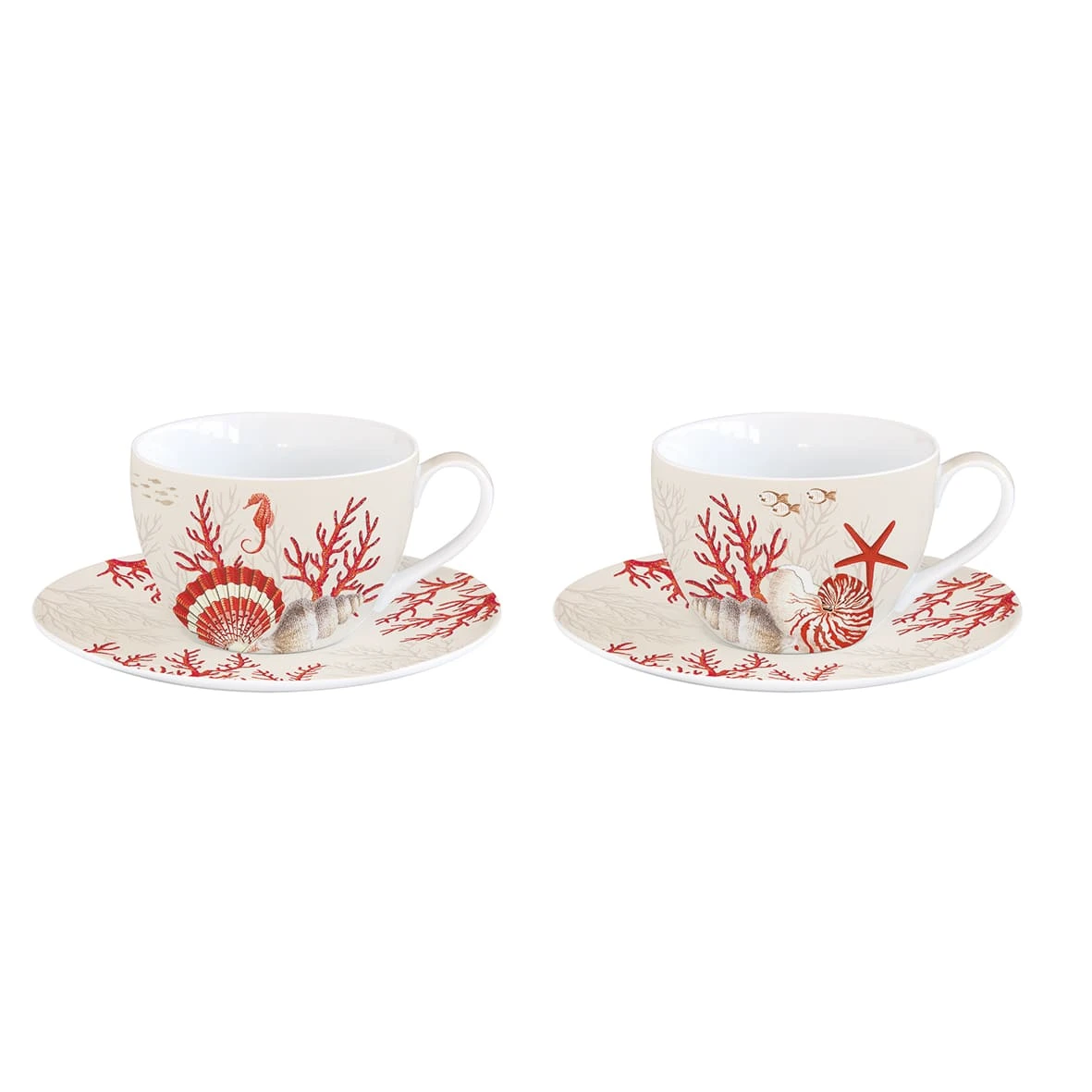 Stupisci i tuoi ospiti con il design colorato che impreziosisce la porcellana del set 2 tazzine da espresso con piattino. Per una rilassante pausa caffè in riva al mare.