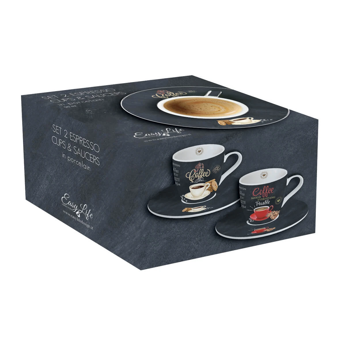 EASY LIFE Set 2 Tazzine Caffè Con Piattino IT’S COFFEE TIME
