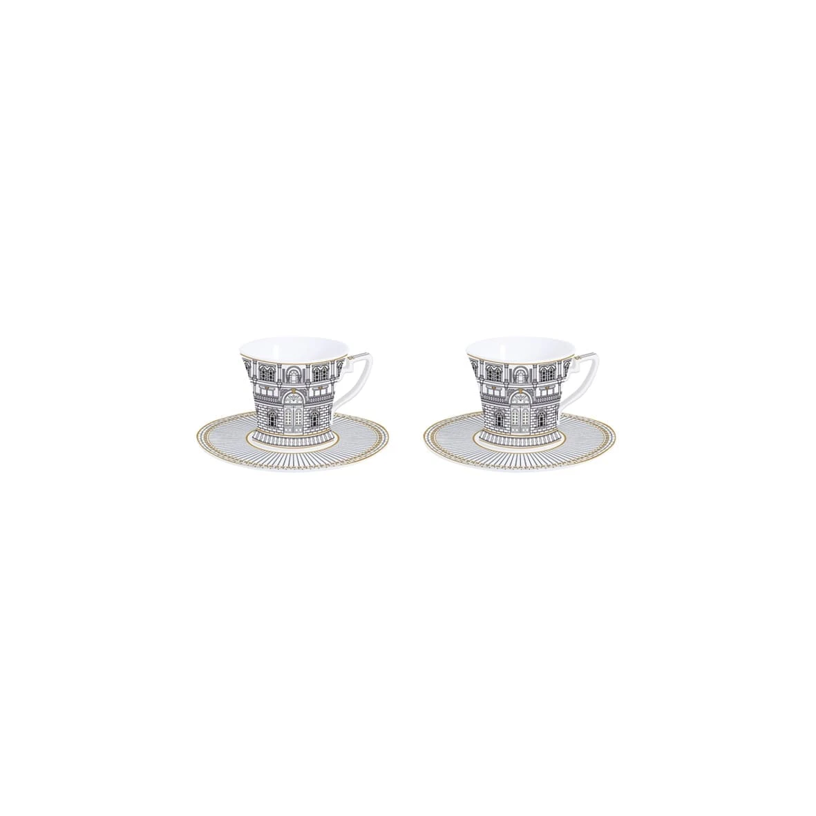 Serviti del set 2 tazzine caffè con piattino in porcellana per gustarti un delizioso espresso in compagnia di amici. Stupisci i tuoi ospiti e crea una mise en place ancora più suggestiva.