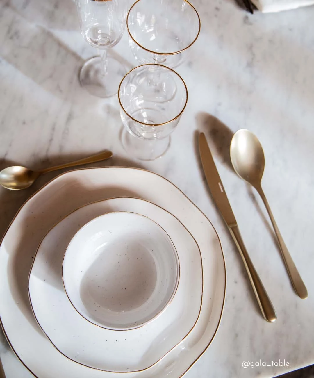 Set 4 ciotole in porcellana con decorazioni in oro diametro 15 cm. ARTESANAL WHITE