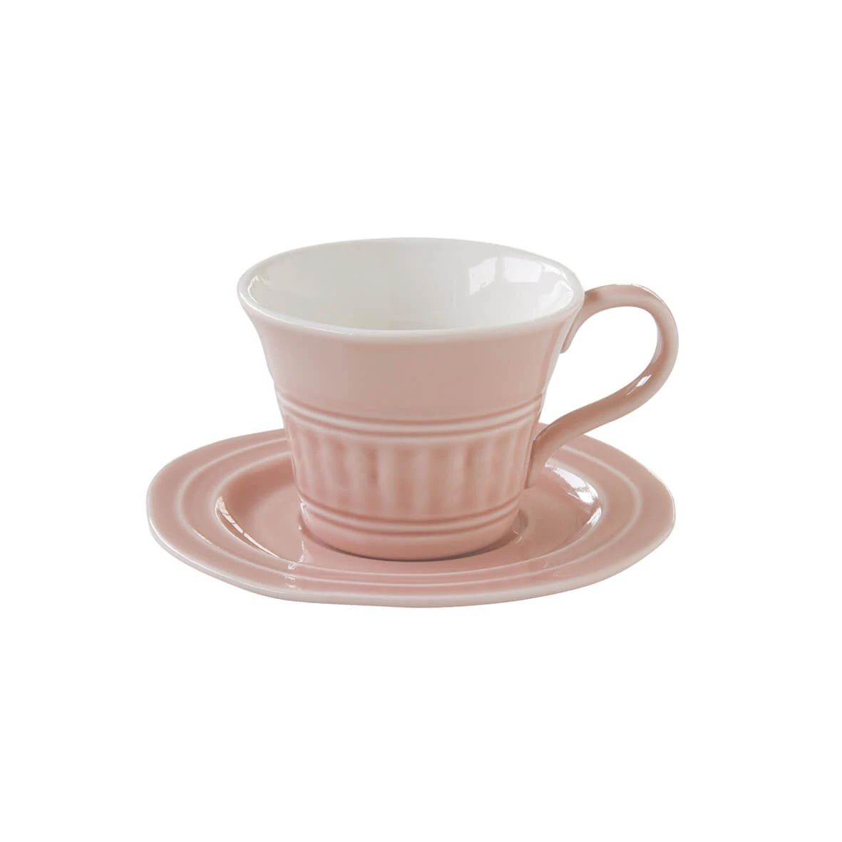 Set 6 tazze colazione 400 ml con piattino in porcellana LIGHT PINK ABITARE