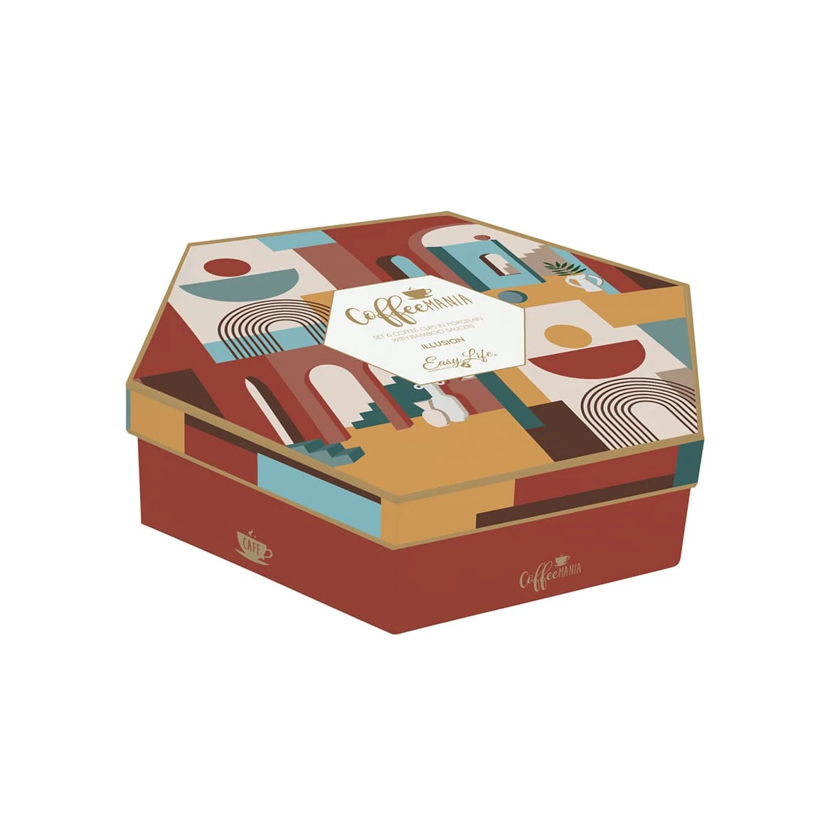 Set 6 tazzine espresso 110 ml con piattini in bamboo in gift box ILLUSION