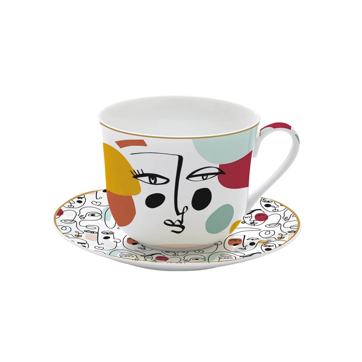La tazza da 400 ml può essere utilizzata come tazza da colazione, per un risveglio energetico. La presenza del piattino la rende utilizzabile anche per té e bevande calde di ogni tipo.